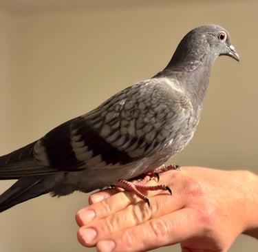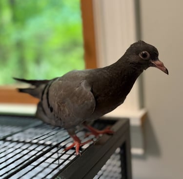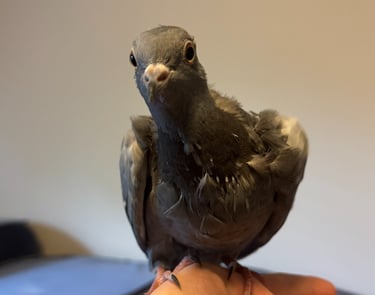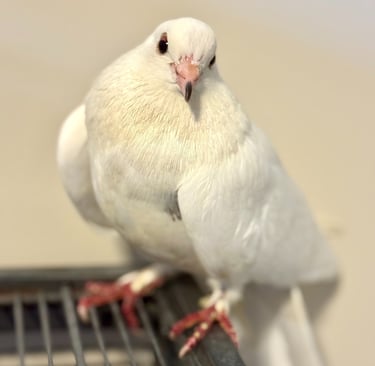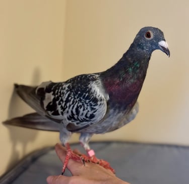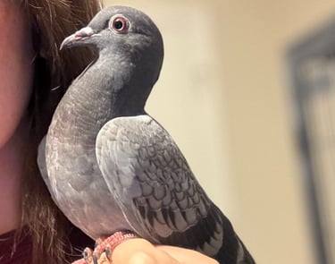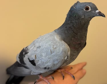We are dedicated to finding loving homes for adoptable pet pigeons. The pigeons listed below are best suited for indoor homes. If you would like to adopt some birds for your aviary, please state that in your application and we will reach out. Click the images to learn more about each bird. Not all adoptable birds may be listed (email to inquire).