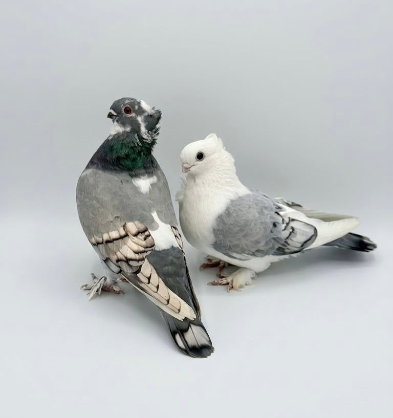 Hi there, we’re Toboggan (that’s me, the soft gray lady) and Bob Sled (the striking white gentleman at my side), a devoted pair of Classic Old Frills with a story that brought us closer than ever. We were rescued from a hoarding situation back in February, and while our past wasn’t easy, we’ve found comfort in each other every step of the way. These days, we’re safe, settled, and ready to start the next chapter of our lives- together, of course.