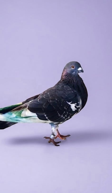 Hi, I’m Zelda, a flirty little pouter with a story as bold as my green (uhh...) wings. When I was found, my flight feathers had been dyed bright green- not exactly a natural look, right? In the world of pigeon “thieving,” birds like me are sometimes used to lure others, and the flashy coloring often marks a so-called “prize.” It’s not a kind life, but I’ve left that behind, and now I’m ready for something much better.